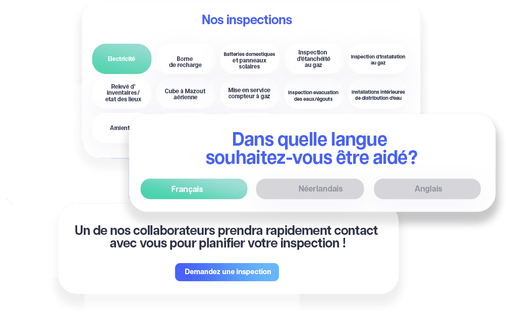 En quelques clics vous pouvez rapidement et efficacement faire une demande pour un de nos huit conrôles. Et ce n’est pas tout – avec nos contrôles combinés, toutes nos inspections peuvent être effectuées en un rendez-vous. Donc qu’attendez-vous? Chez Certfiorme vous êtes dans le bon avec vos contrôles.